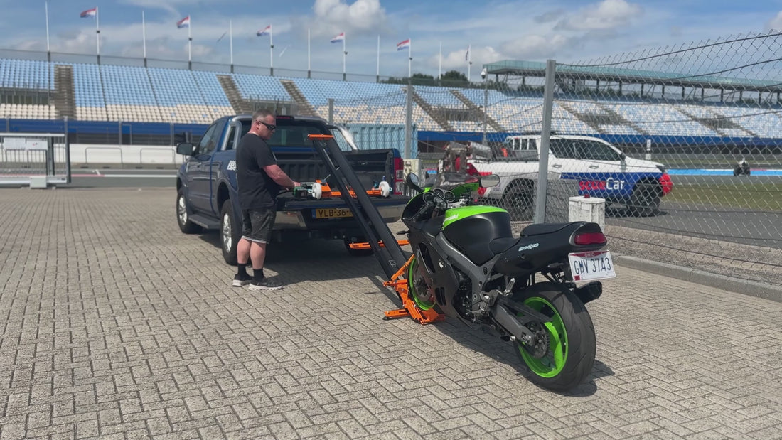 La forma más económica y sencilla de cargar tu motocicleta tú solo: sin fuerza, sin riesgo, sin esfuerzo.